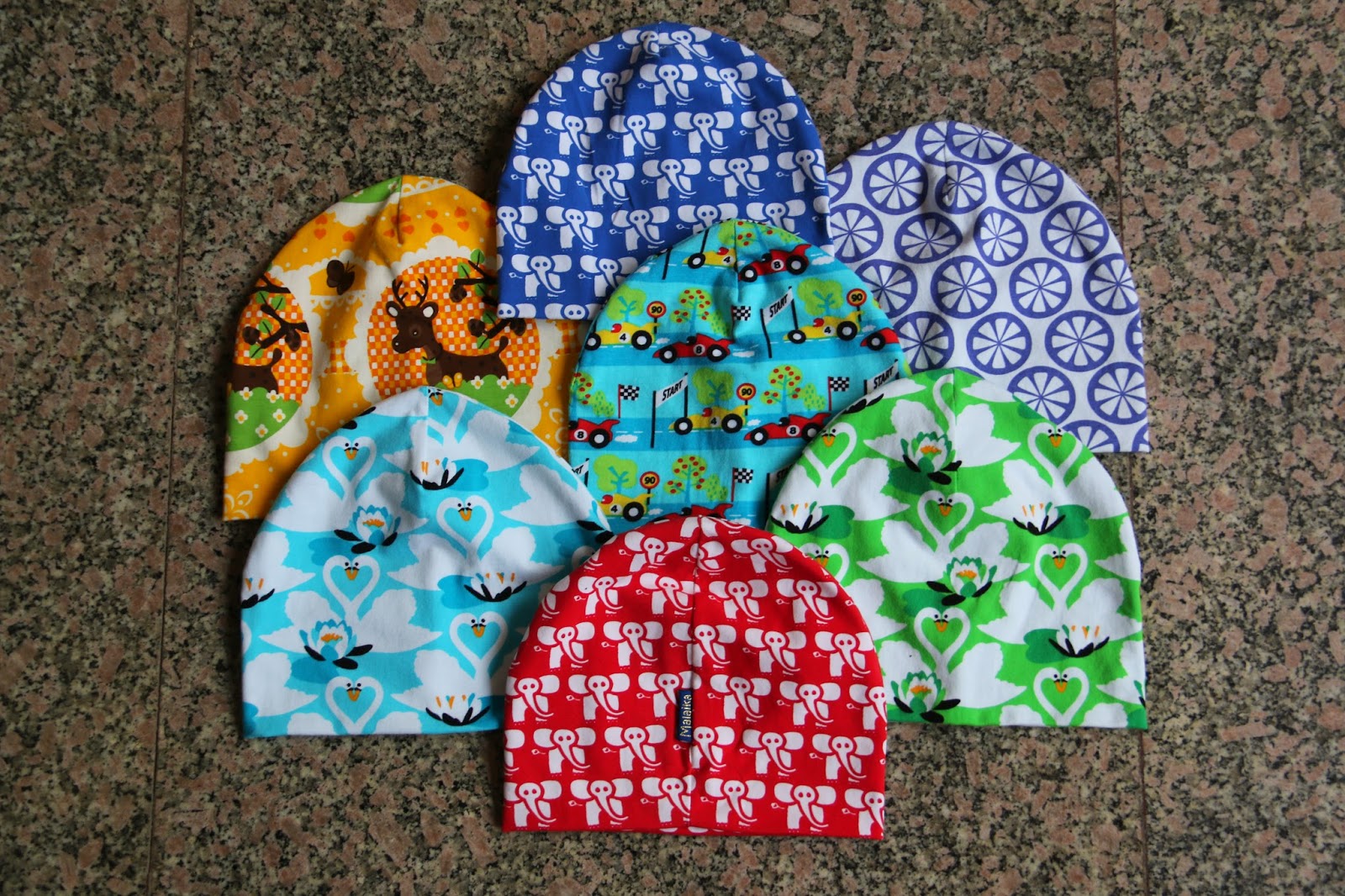 Här kommer lite bilder på mössor i de nyaste tygerna!